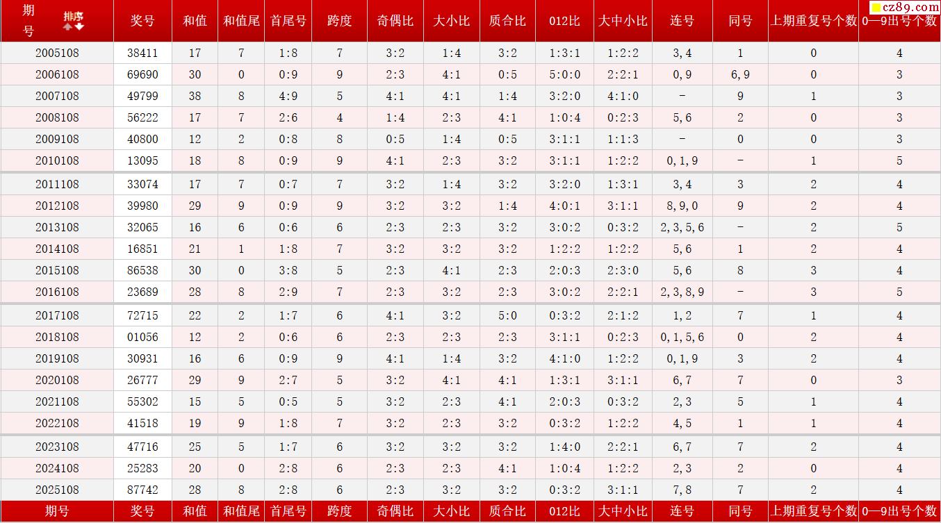 第108期体彩P5历史同期对比