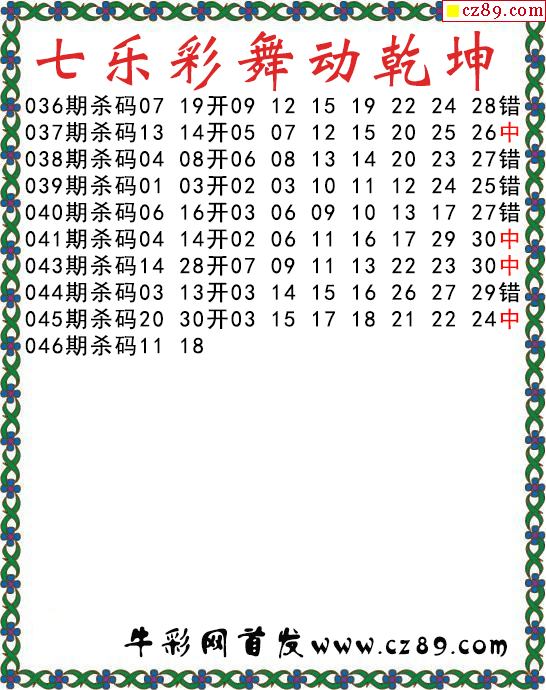 七乐彩2026046期舞动乾坤图谜 10中4